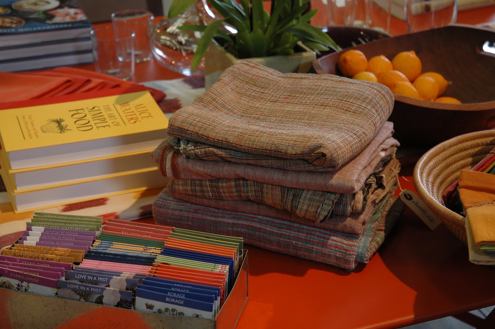 California store visit : assorted lungis at The Gardener in Healdsburg, CA, one of my favorite cookbooks and some Meyer lemons