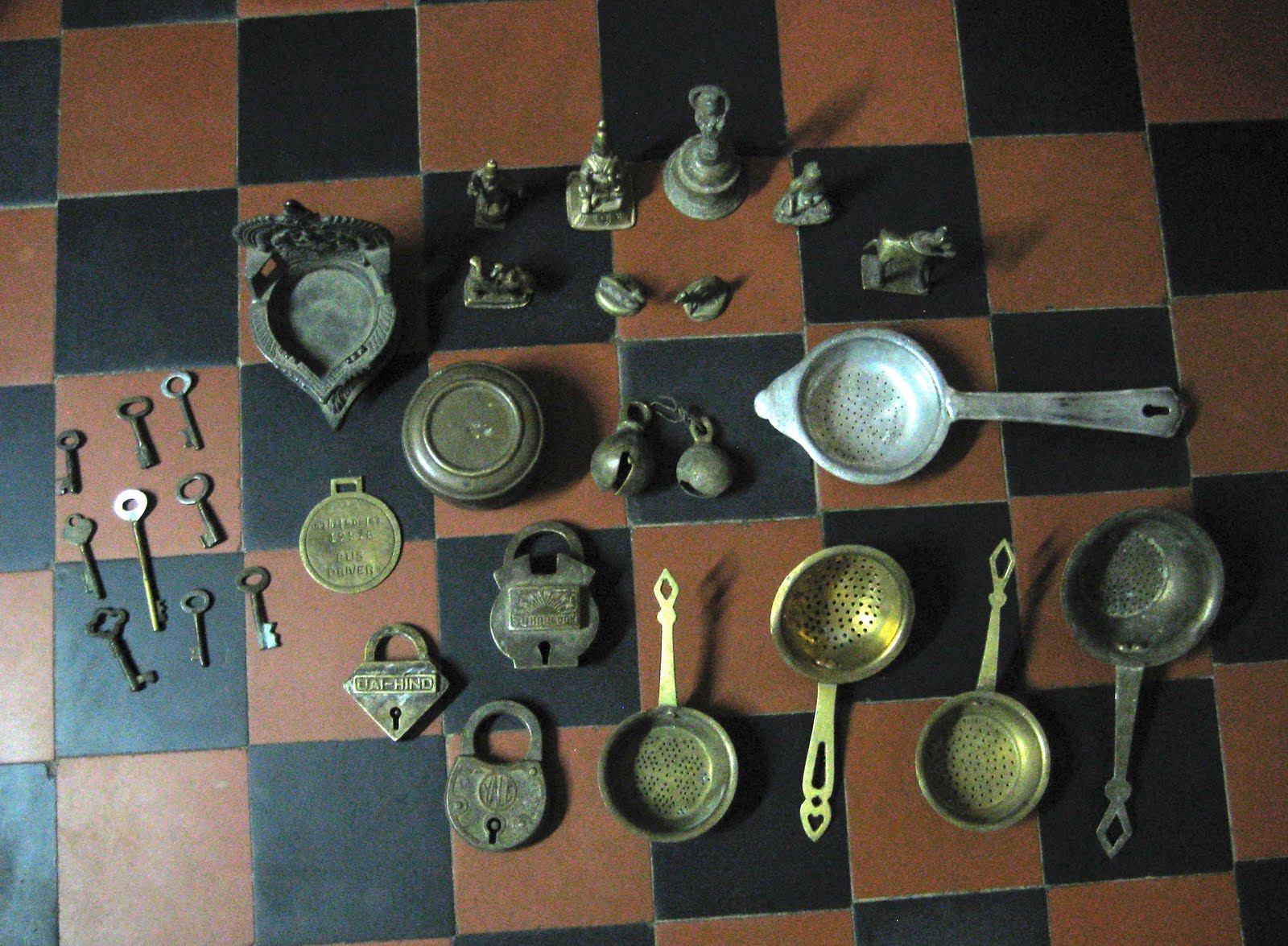 improbably, I found my favorite brass merchant (front left) from a past flea market, here at his friend's shop in the old city.