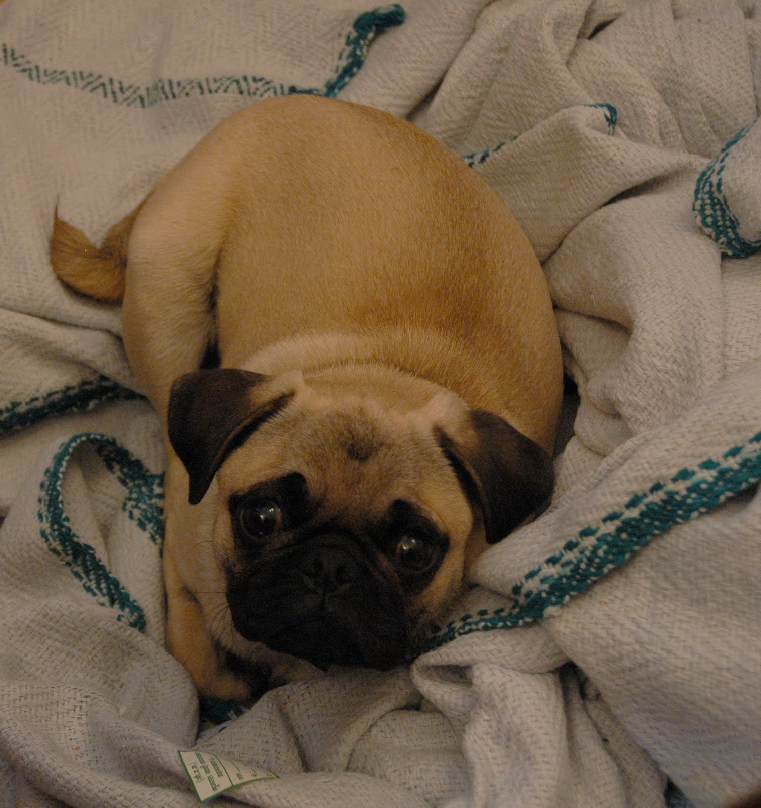 a somewhat guilty looking "cozyness tester" in the blankets awaiting the wash