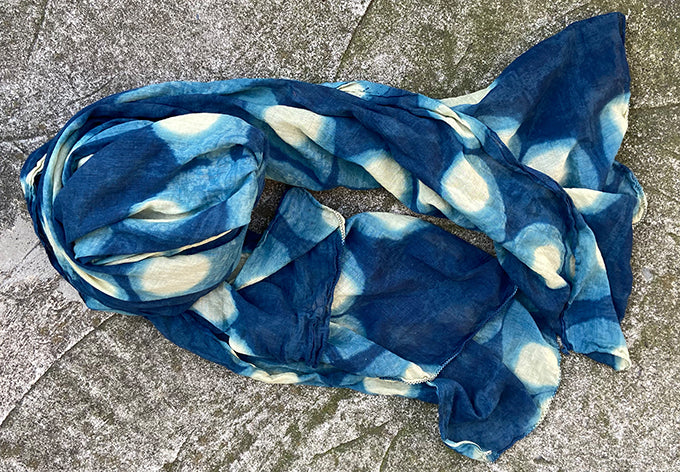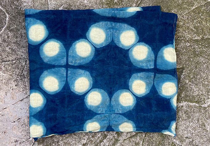 clamp dyed in shades of indigo