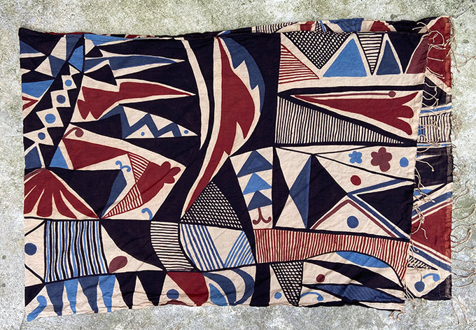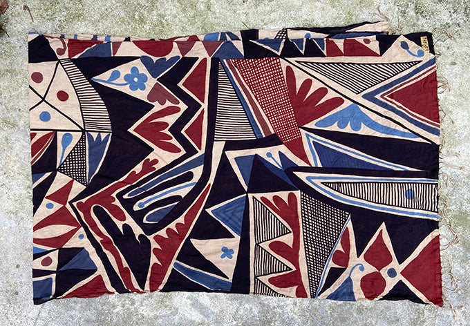 this graphic scarf is painstakingly made with 100% natural dyes