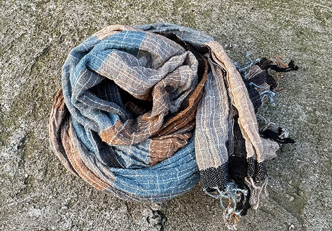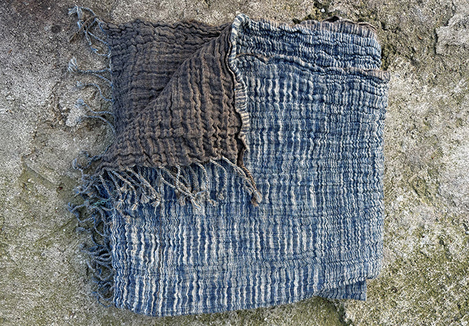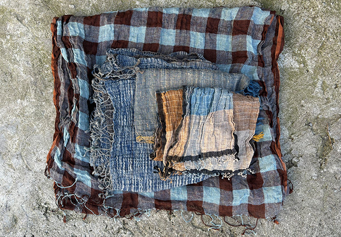 an assortment of handloom scarves with natural indigo