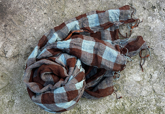 indigo/brown check linen 30"x82"
