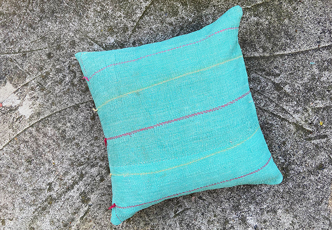 vintage printed cotton kanthas recycled into double sided throw pillows