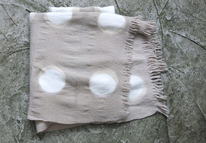 oversized polka dot pattern is resist dyed leaving a soft edge effect