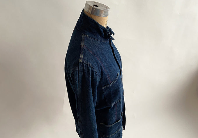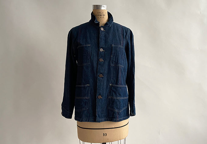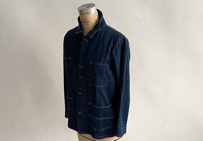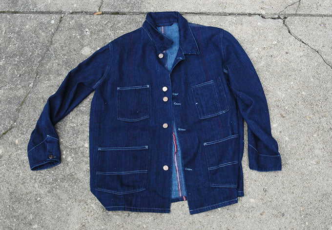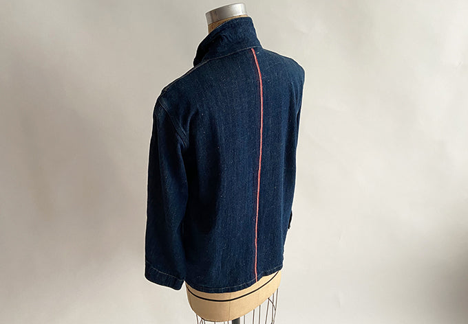 styled after a beloved antique mens jacket and constructed from full width of red selvedge denim