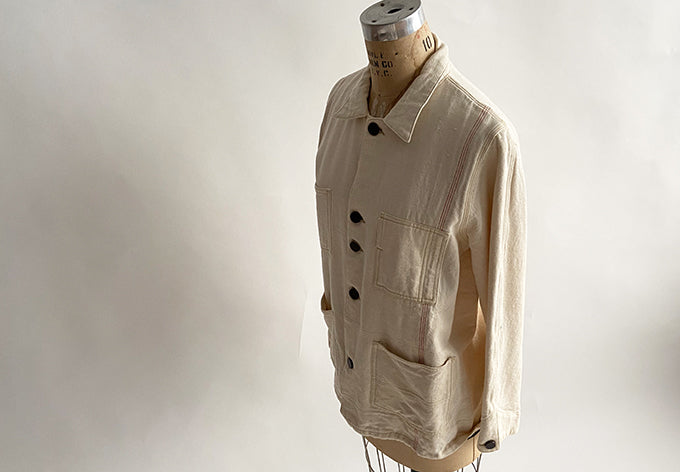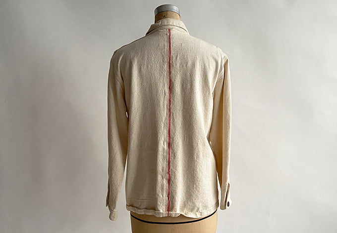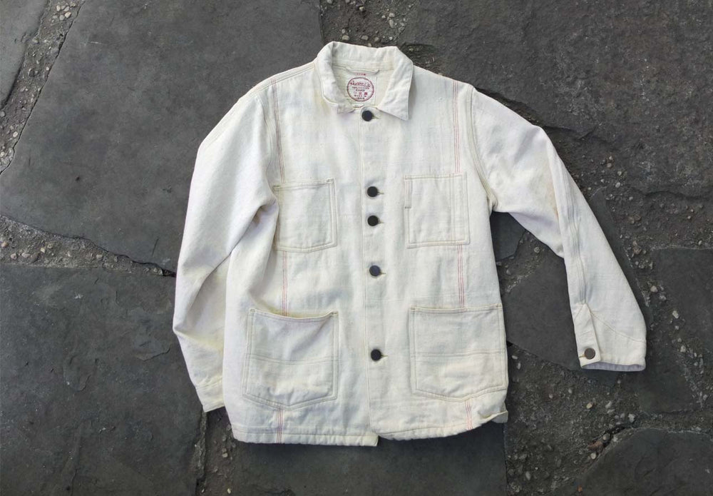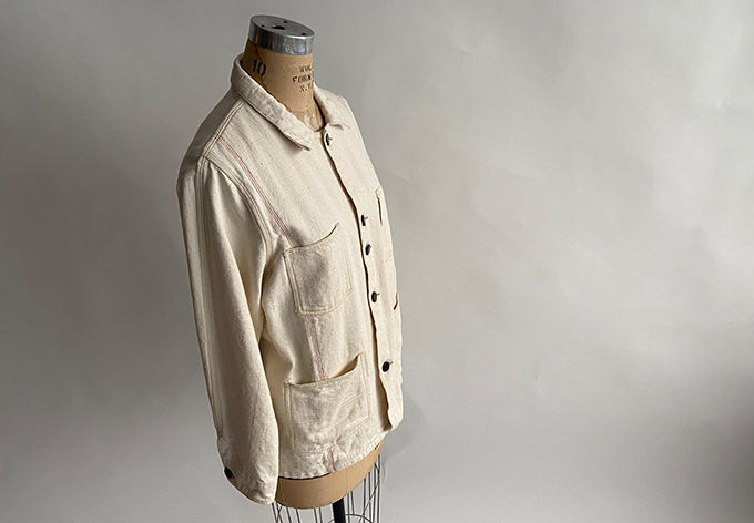 styled after a beloved antique mens jacket and constructed from full width of unbleached red selvedge denim
