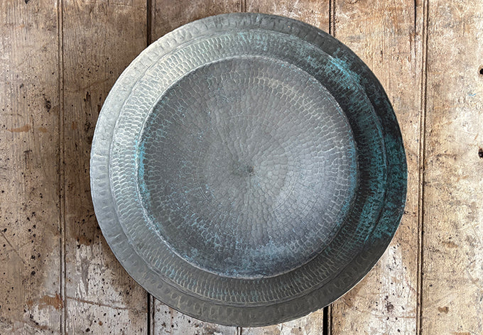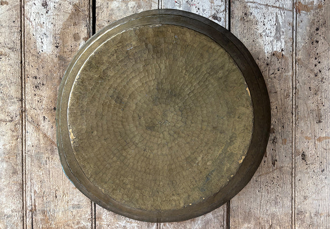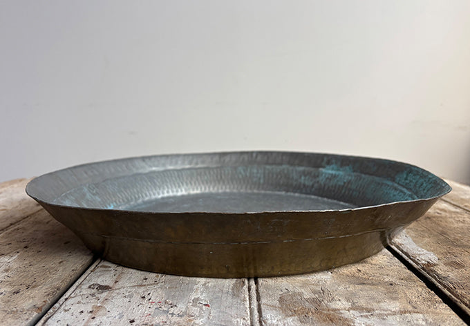 hammered brass with patinated interior; some engraving on side and back