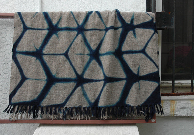 oversized diamond pattern is resist dyed leaving a soft edge effect