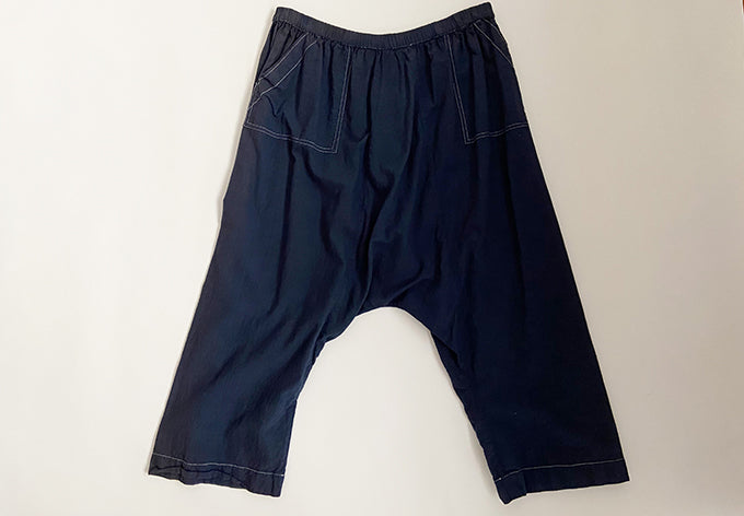 drop crotch and easy fit with cropped length; elastic waistband, front patch pockets