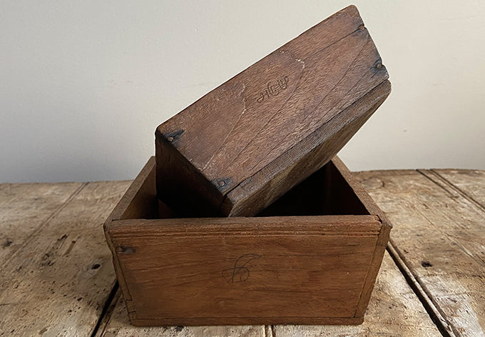 charming hand carved lettering on small tray, hand drawn lettering in pencil on larger