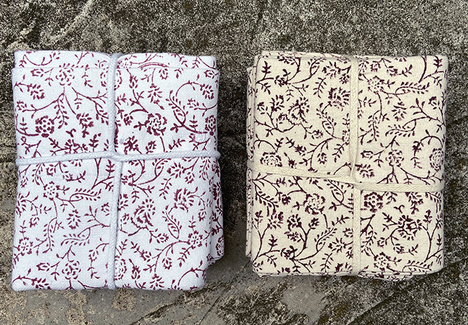 red botanical print on white or unbleached ground